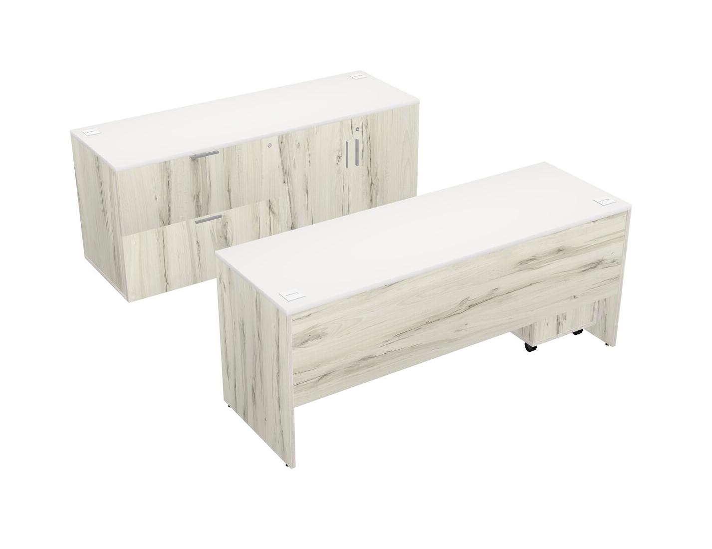 White Office Parallel Desk With Lateral Storage Combo + Wooden Mobile Drawers