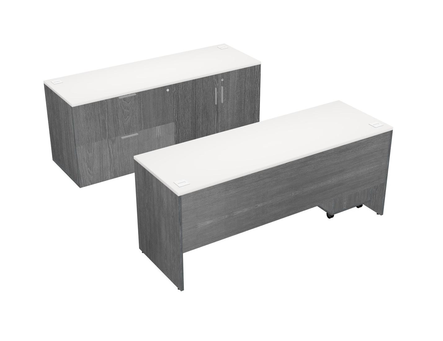 White Office Parallel Desk With Lateral Storage Combo + Wooden Mobile Drawers