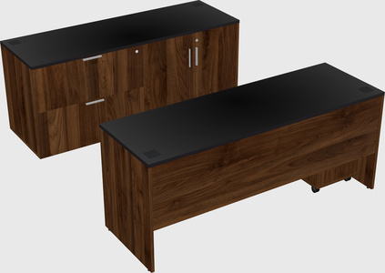 Black Office Parallel Desk With Lateral Storage Combo + Wooden Mobile Drawers