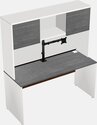 Grey Rectangular Office Desk And White Hutch Including Black Monitor Arm (single Arm)