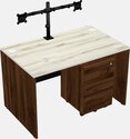 Heinne Holz Rectangular Office Desk Plus Columbia Walnut Wooden Mobile Drawers Including Black Monitor Arm (double Arms)
