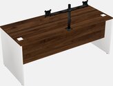 Columbia Walnut Rectangular Office Desk Plus White Hanging Drawers Including Black Monitor Arm (double Arms)
