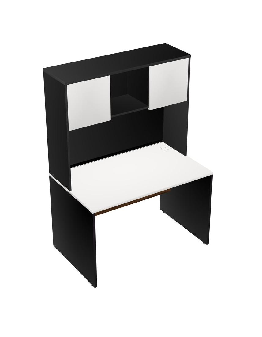 White Rectangular Office Desk And Black Hutch