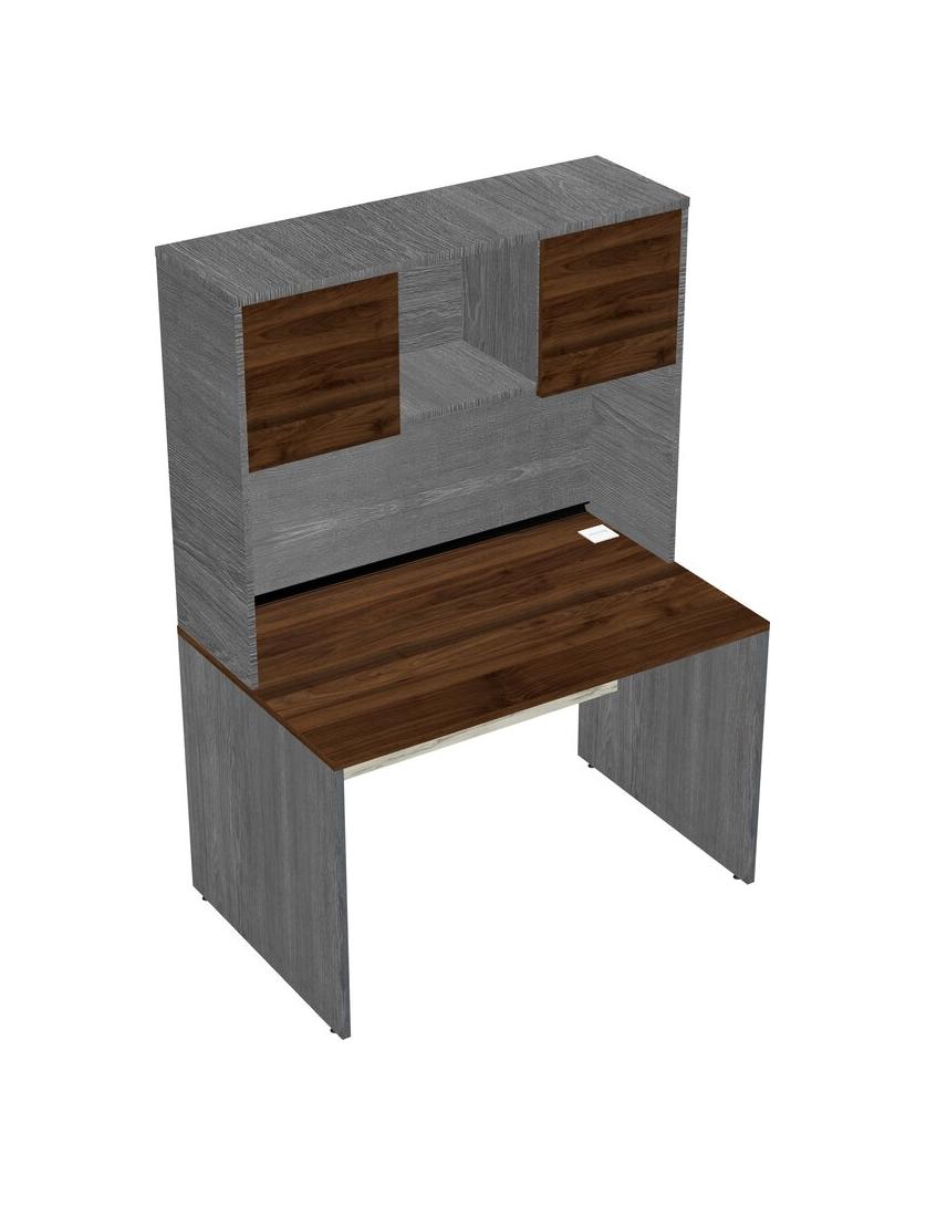 Columbia Walnut Rectangular Office Desk And Grey Hutch