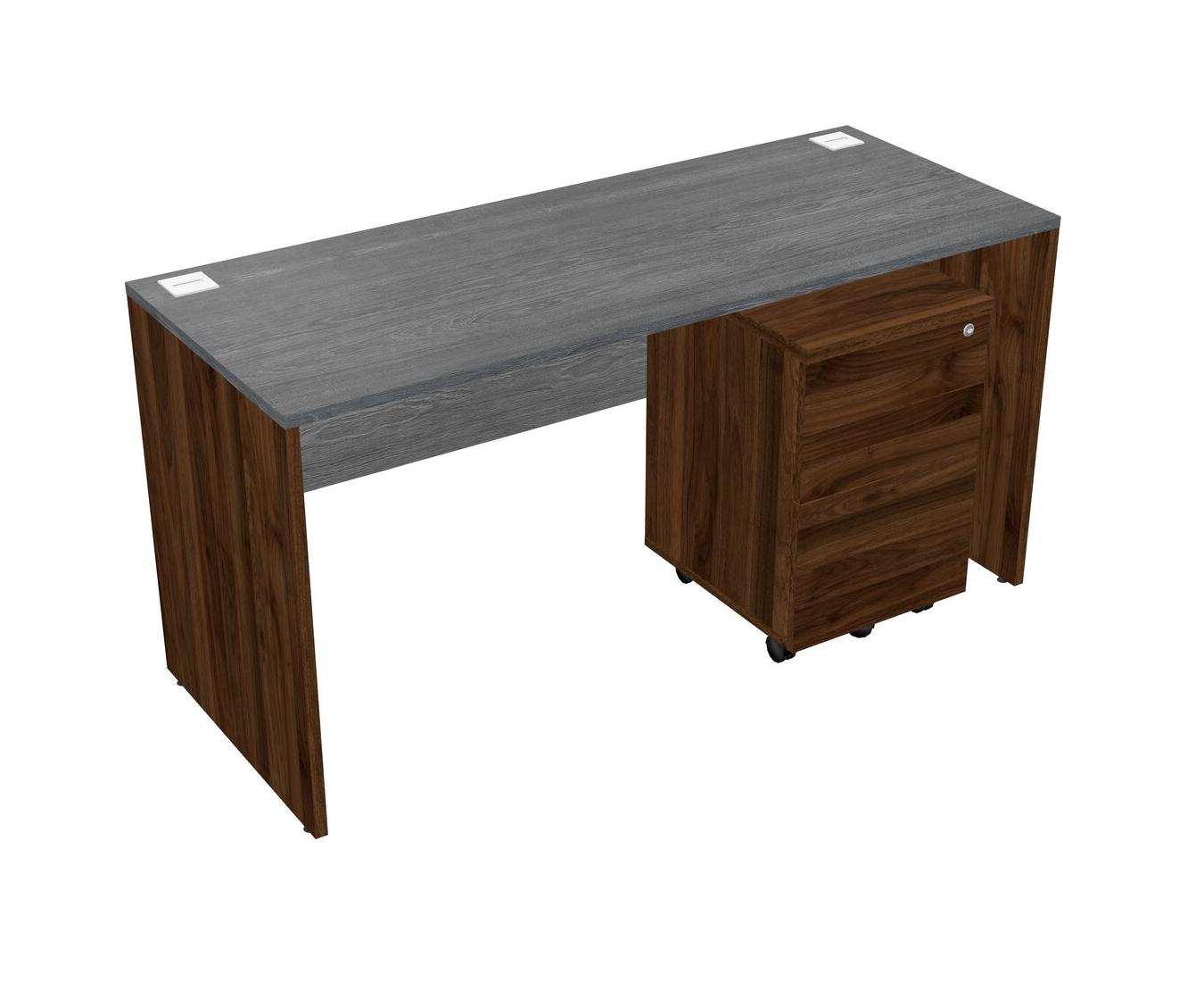 Grey Rectangular Office Desk Plus Columbia Walnut Wooden Mobile Drawers