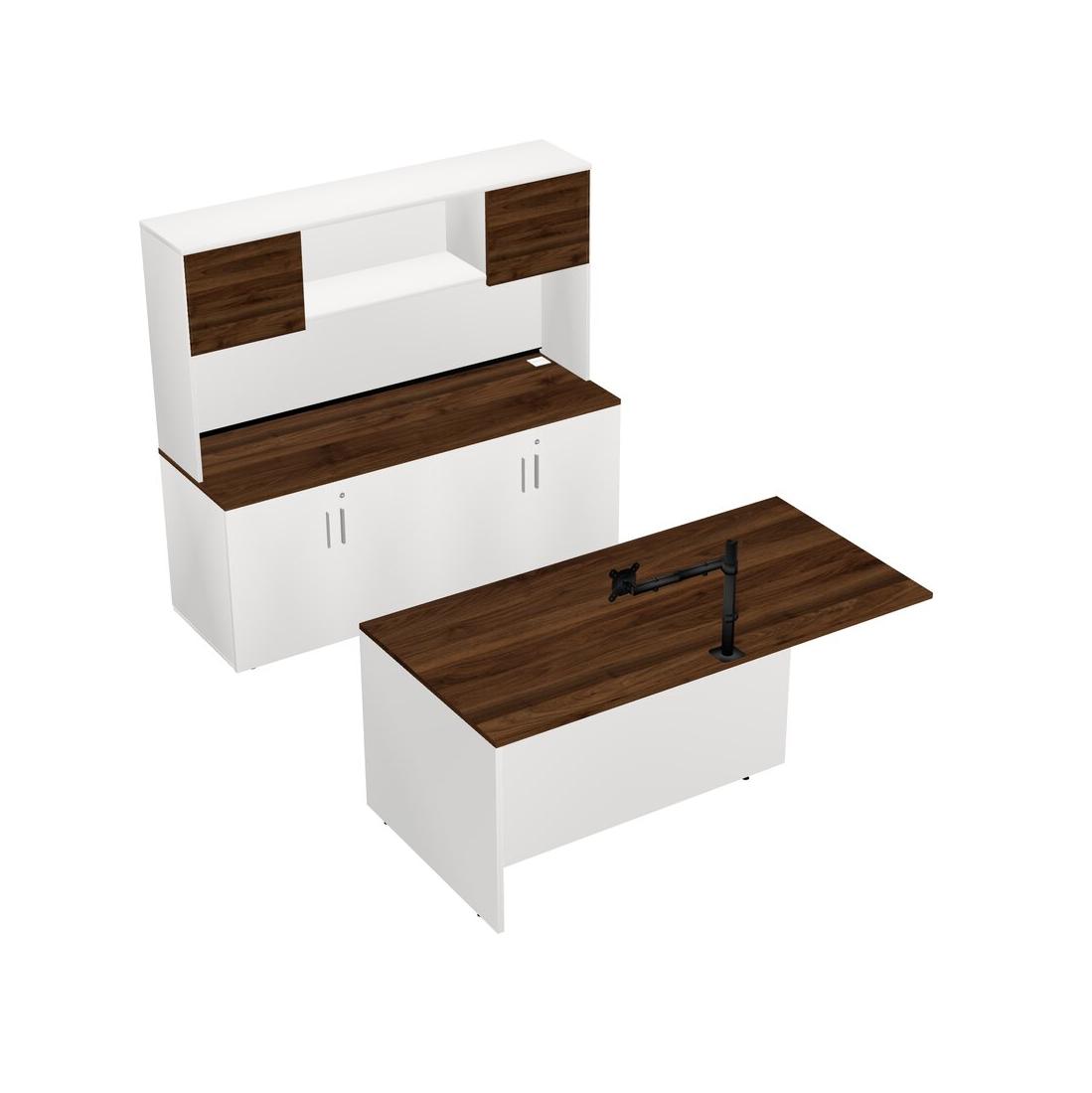 Executive Office Parallel Parallel Desk With Credenza + Hutch + Monitor Arm (single Arm)