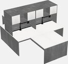 White Quad L-shaped Office Desks With Black Monitor Arm (single Arm)