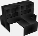 Black Quad L-shaped Office Desks With Black Monitor Arm (double Arms)