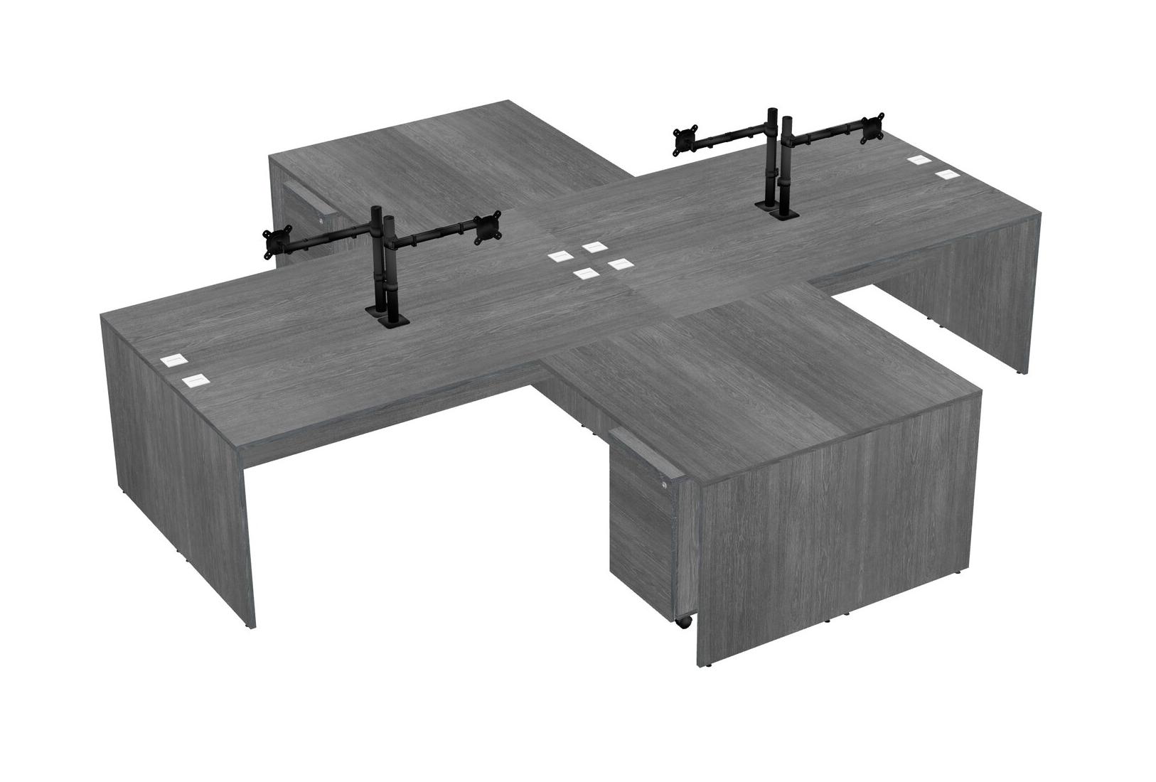 Grey Quad L-shaped Office Desks With Black Monitor Arm (single Arm)