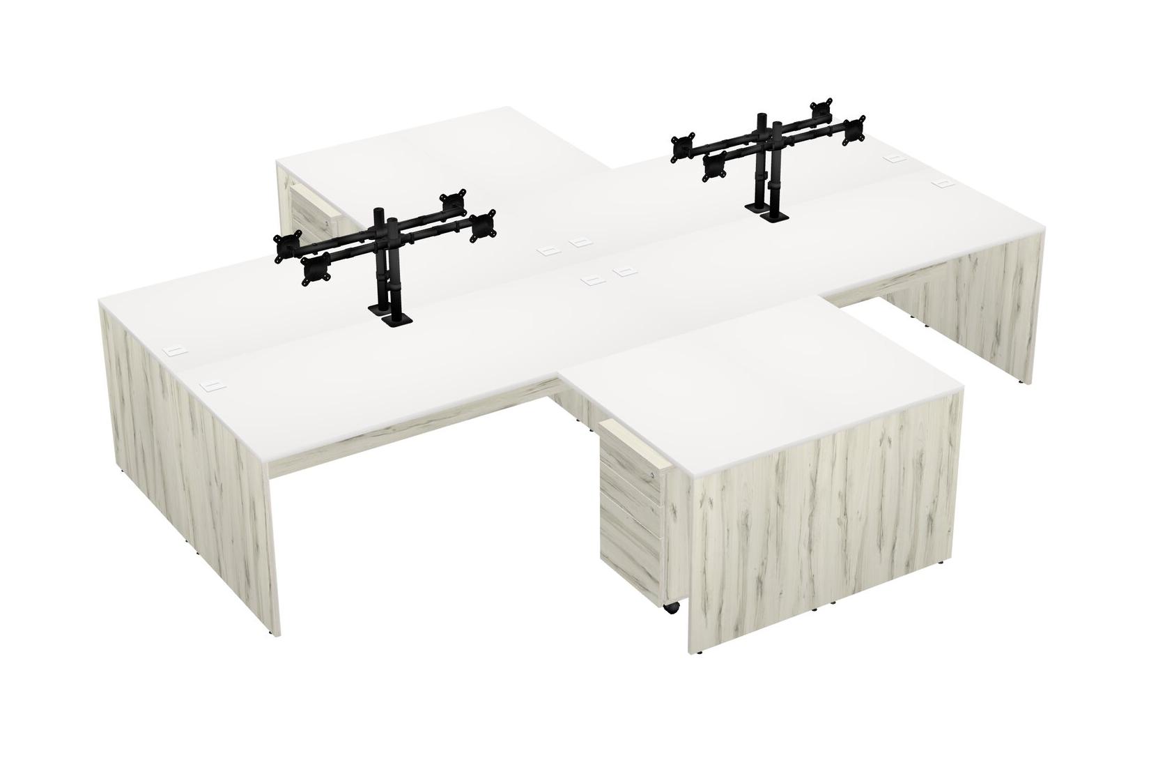 White Quad L-shaped Office Desks With Black Monitor Arm (double Arms)