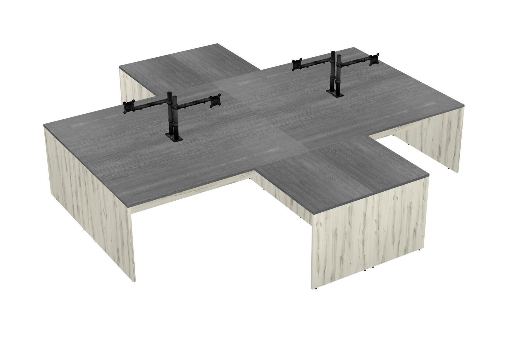 Grey Quad L-shaped Office Desks With Black Monitor Arm (single Arm)