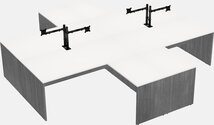 White Quad L-shaped Office Desks With Black Monitor Arm (single Arm)