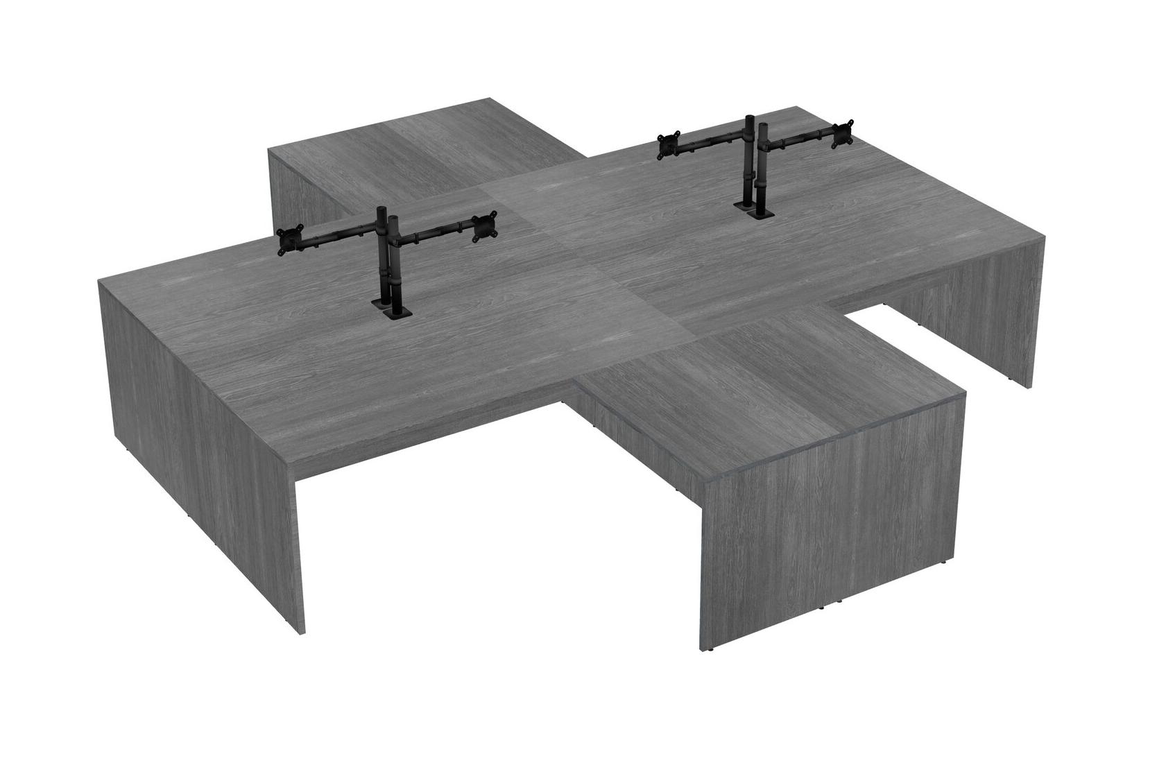 Grey Quad L-shaped Office Desks With Black Monitor Arm (single Arm)