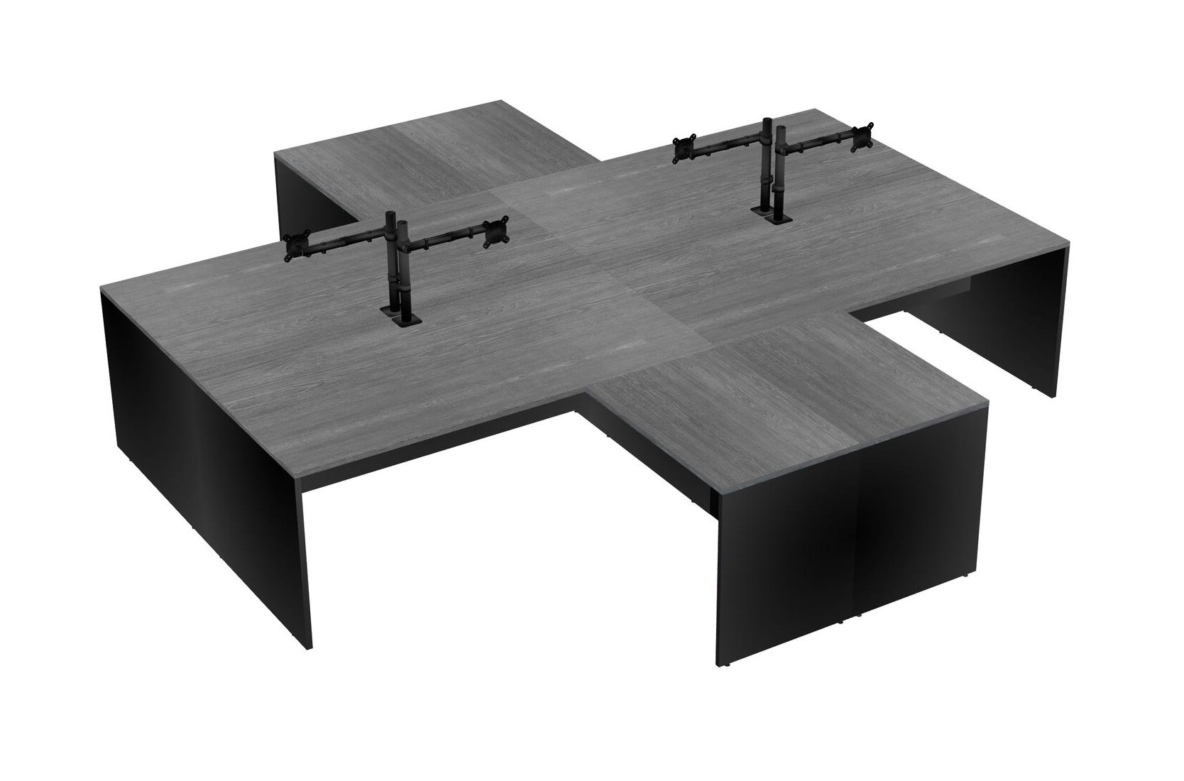 Grey Quad L-shaped Office Desks With Black Monitor Arm (single Arm)