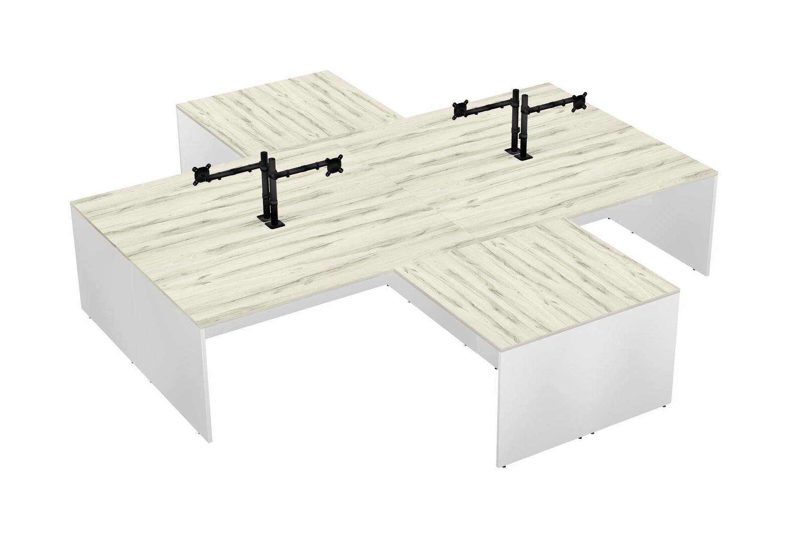 Heinne Holz Quad L-shaped Office Desks With Black Monitor Arm (single Arm)