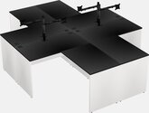 Black Quad L-shaped Office Desks With Black Monitor Arm (single Arm)
