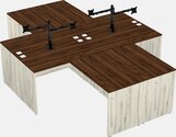 Columbia Walnut Quad L-shaped Office Desks With Black Monitor Arm (single Arm)