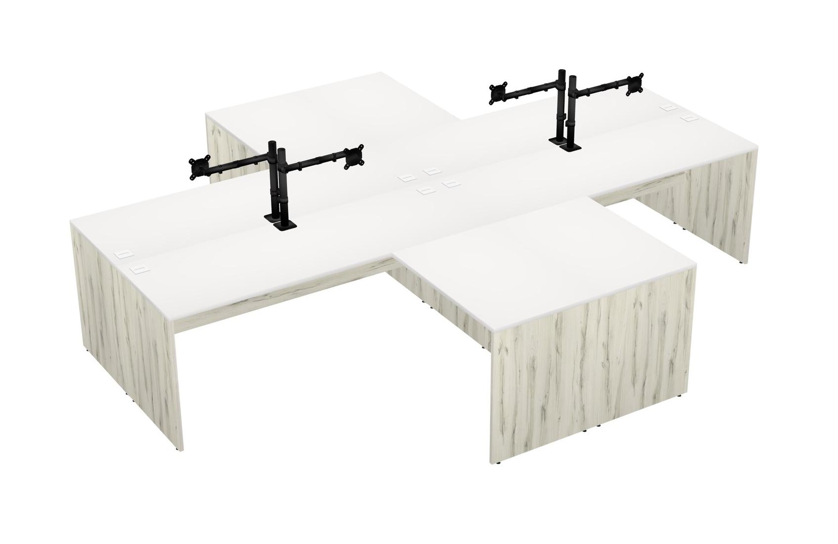 White Quad L-shaped Office Desks With Black Monitor Arm (single Arm)