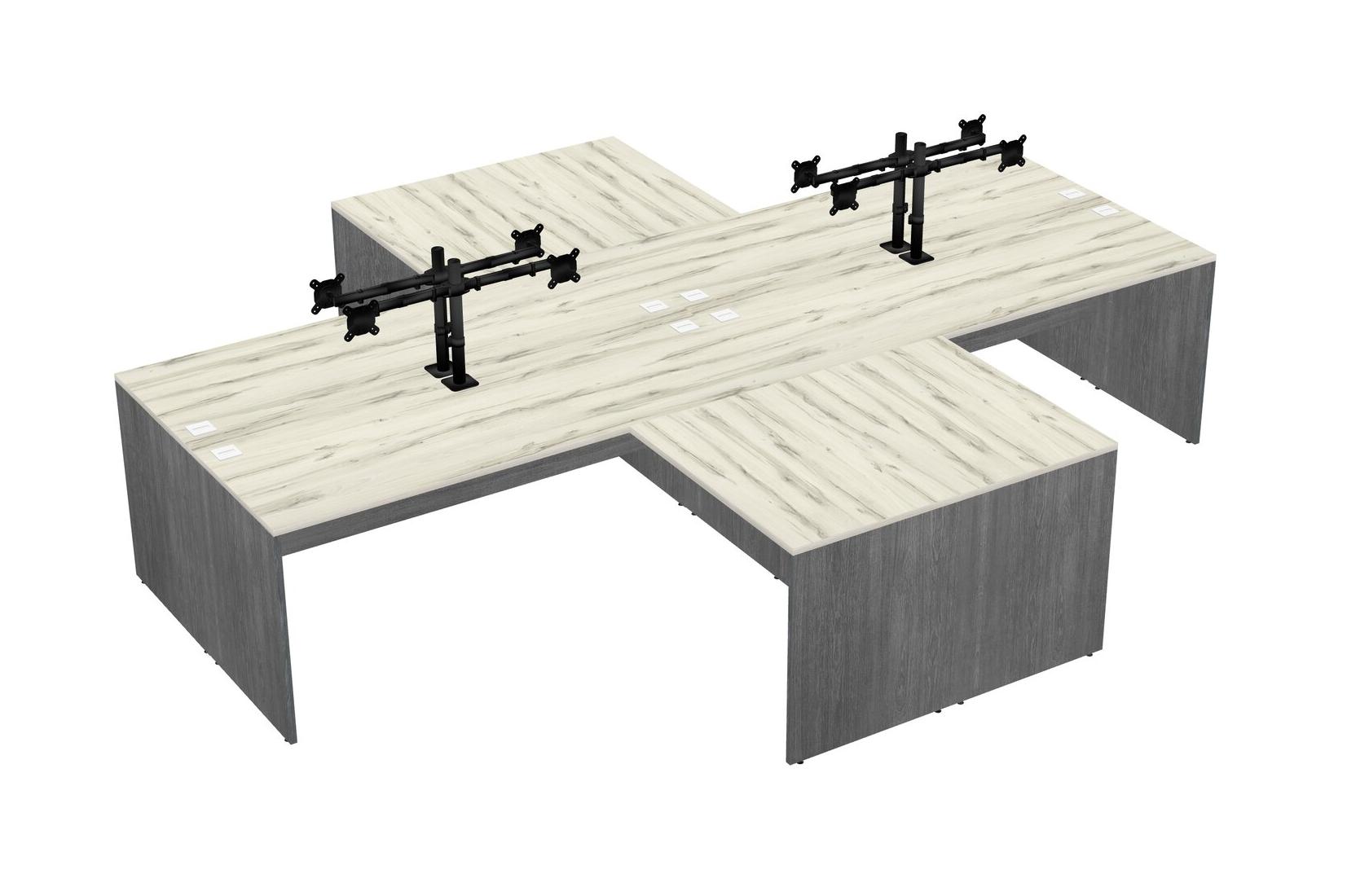 Heinne Holz Quad L-shaped Office Desks With Black Monitor Arm (double Arms)