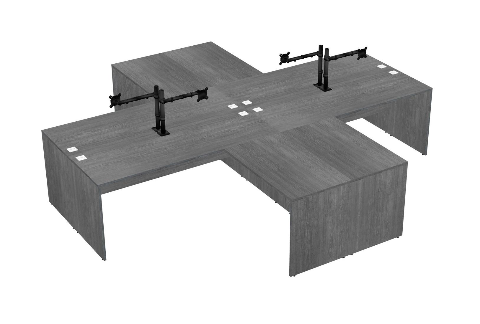 Grey Quad L-shaped Office Desks With Black Monitor Arm (single Arm)