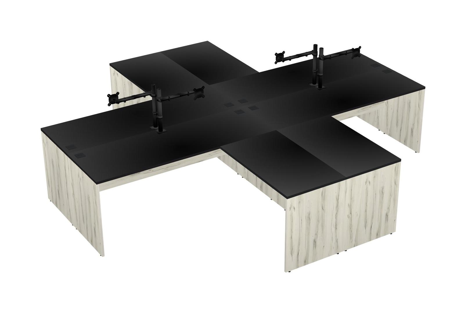 Black Quad L-shaped Office Desks With Black Monitor Arm (single Arm)