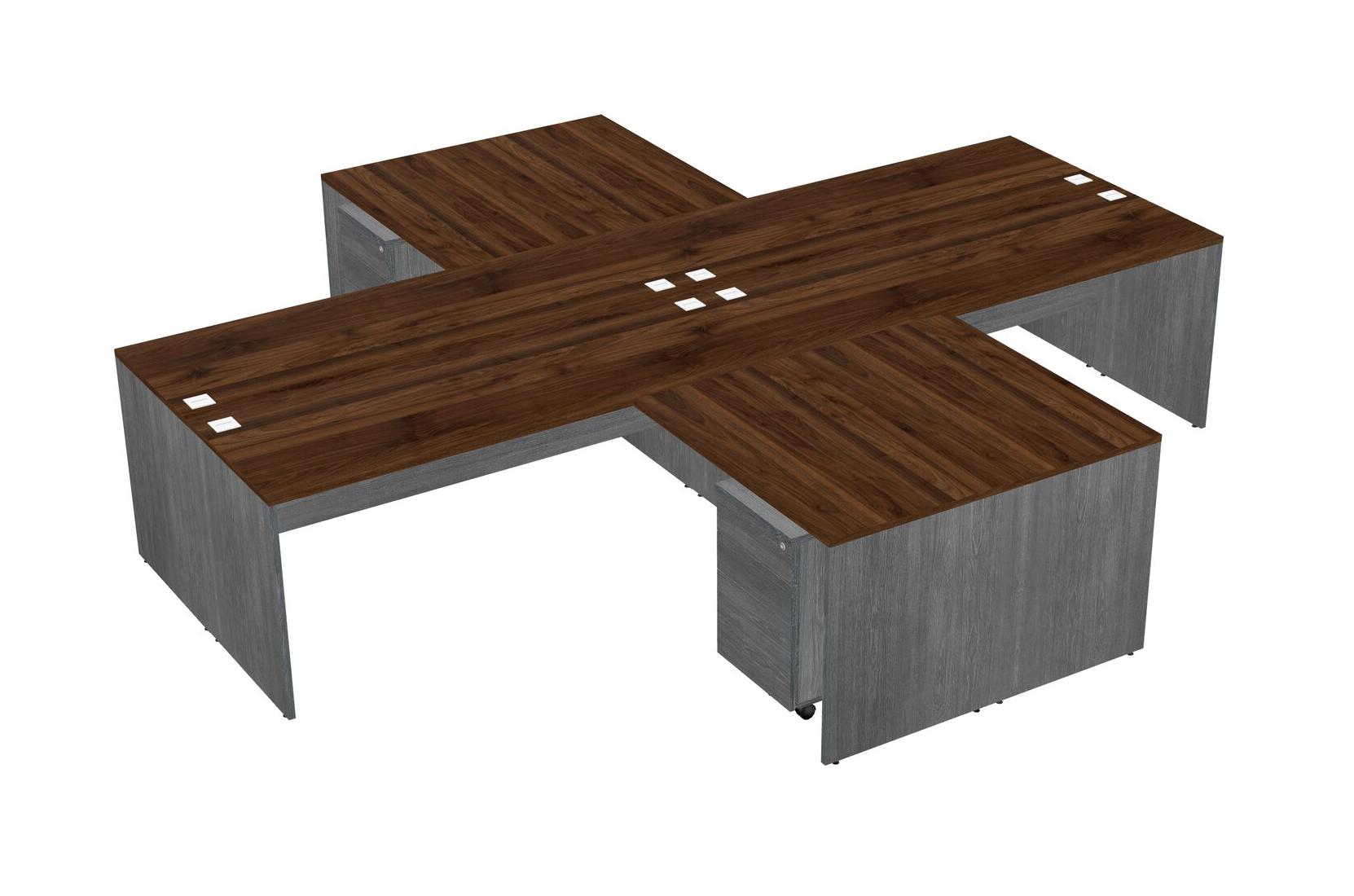 Columbia Walnut Quad L-shaped Office Desks