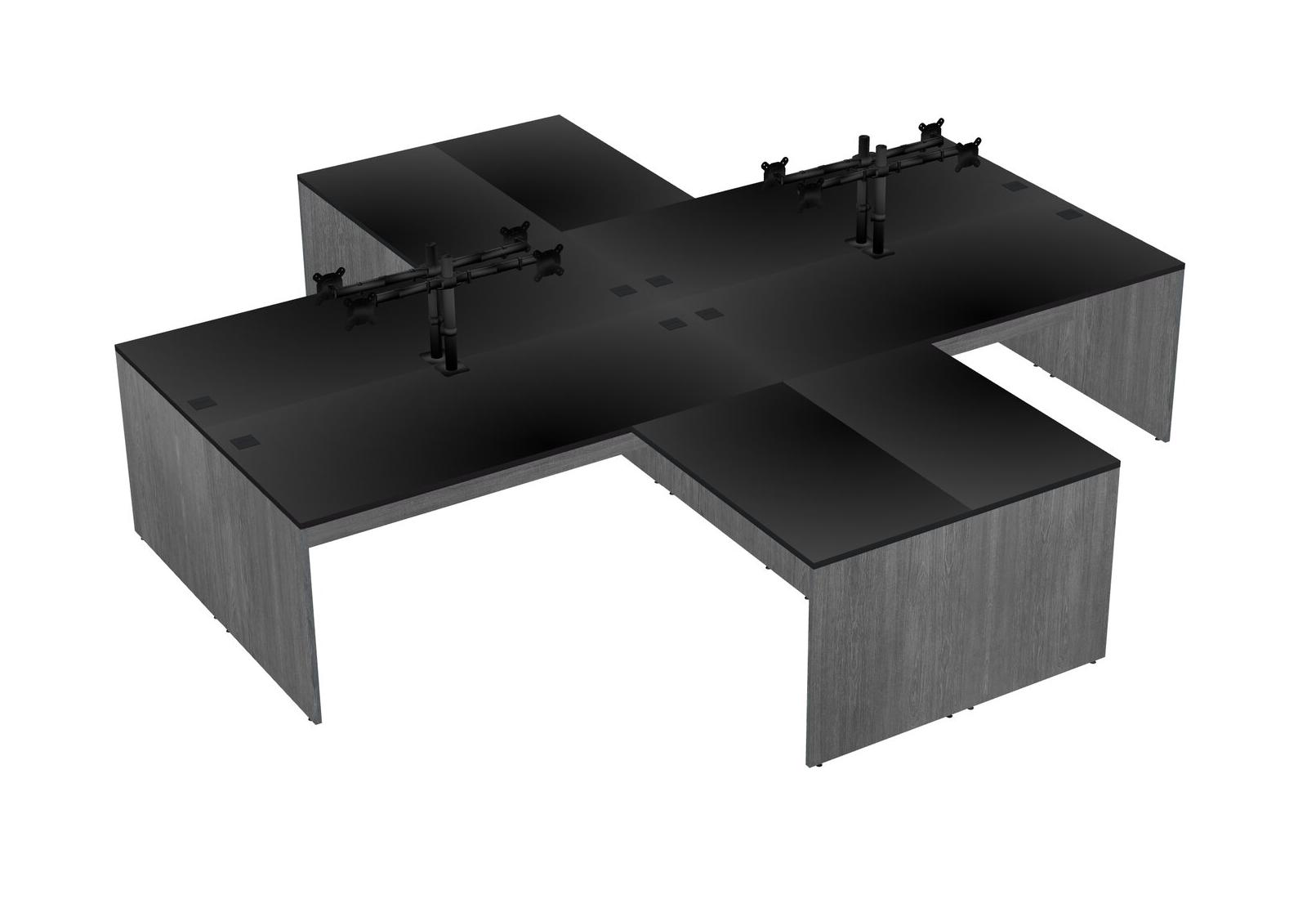 Black Quad L-shaped Office Desks With Black Monitor Arm (double Arms)