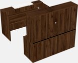 Columbia Walnut Modular Reception Desk + Lateral Storage Combo Credenza + Hutch + Floating Counter