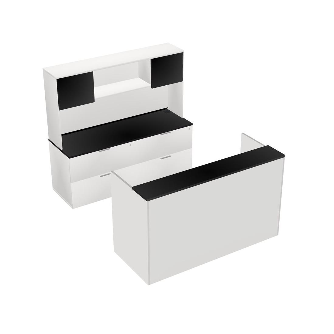 Black Modular Reception Desk + Lateral File Cabinet Credenza + Hutch