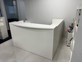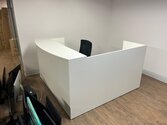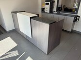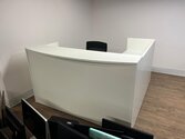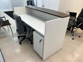 Heinne Holz Modular Reception Desk + Wooden Mobile Drawers + Credenza Desk + Floating Counter + Hutch