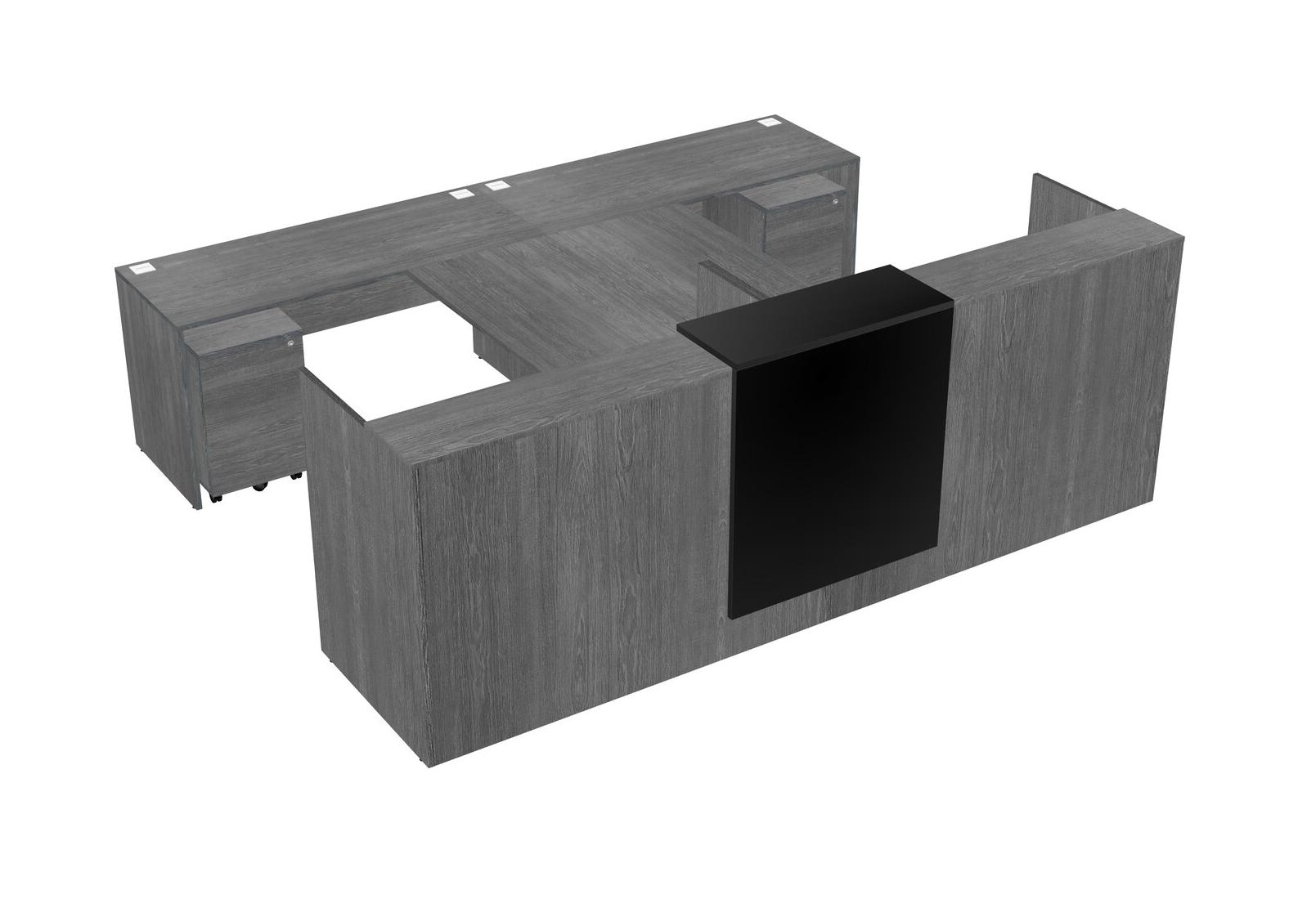 Modular Shared Reception Desk + Credenza Desk With Floating Counter + Wooden Mobile Drawers