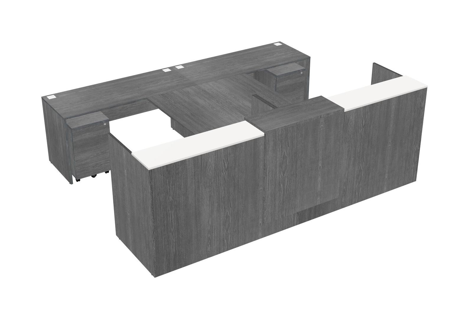 Modular Shared Reception Desk + Credenza Desk With Floating Counter + Wooden Mobile Drawers