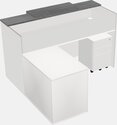 Grey Modular Reception Desk With Storage Cabinet Return With Floating Counter And Wooden Mobile Drawers