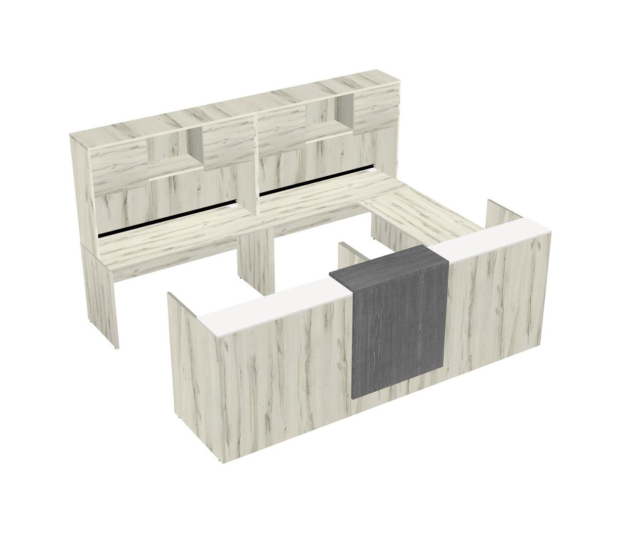 Modular Shared One Sided U-Shaped Reception Desk With Floating Counter + Hutch + Wooden Mobile Drawers