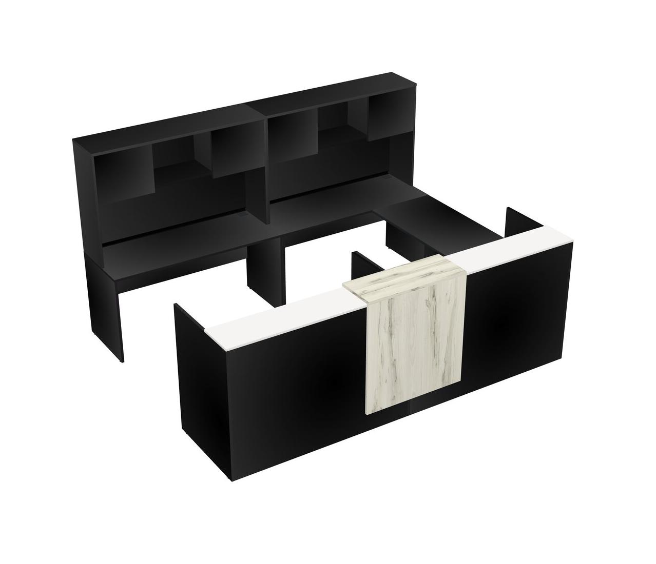 Modular Shared One Sided U-Shaped Reception Desk With Floating Counter + Hutch + Wooden Mobile Drawers
