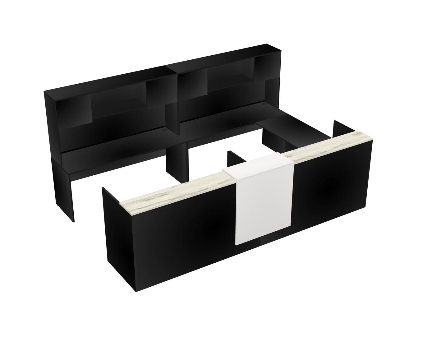 Modular Shared One Sided U-Shaped Reception Desk With Floating Counter + Hutch + Wooden Mobile Drawers