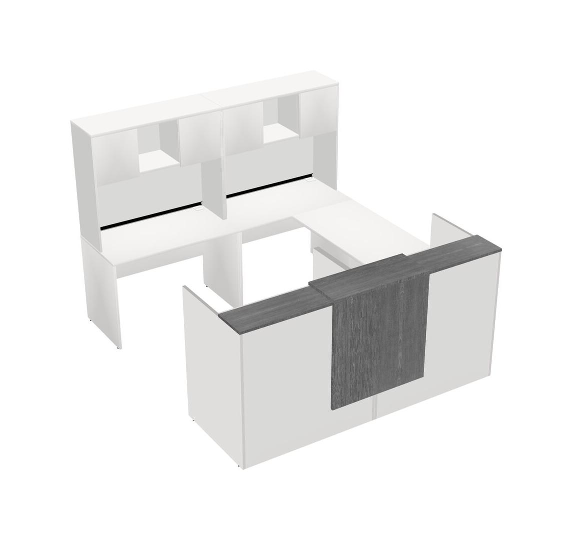 Modular Shared One Sided U-Shaped Reception Desk With Floating Counter + Hutch + Wooden Mobile Drawers