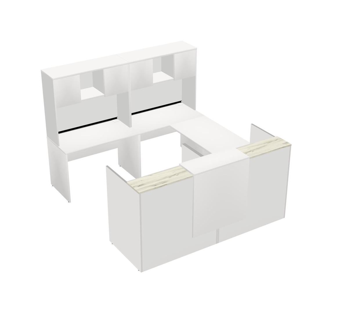 Modular Shared One Sided U-Shaped Reception Desk With Floating Counter + Hutch + Wooden Mobile Drawers