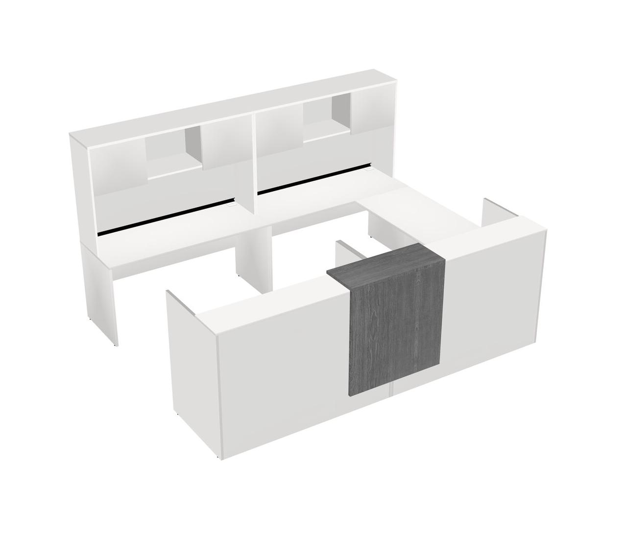 Modular Shared One Sided U-Shaped Reception Desk With Floating Counter + Hutch
