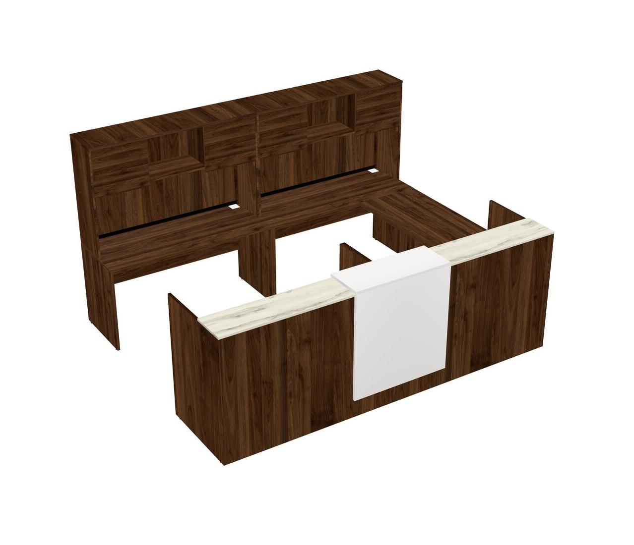 Modular Shared One Sided U-Shaped Reception Desk With Floating Counter + Hutch