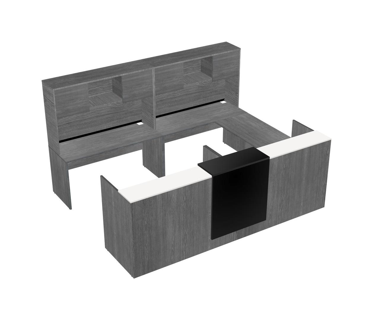 Modular Shared One Sided U-Shaped Reception Desk With Floating Counter + Hutch
