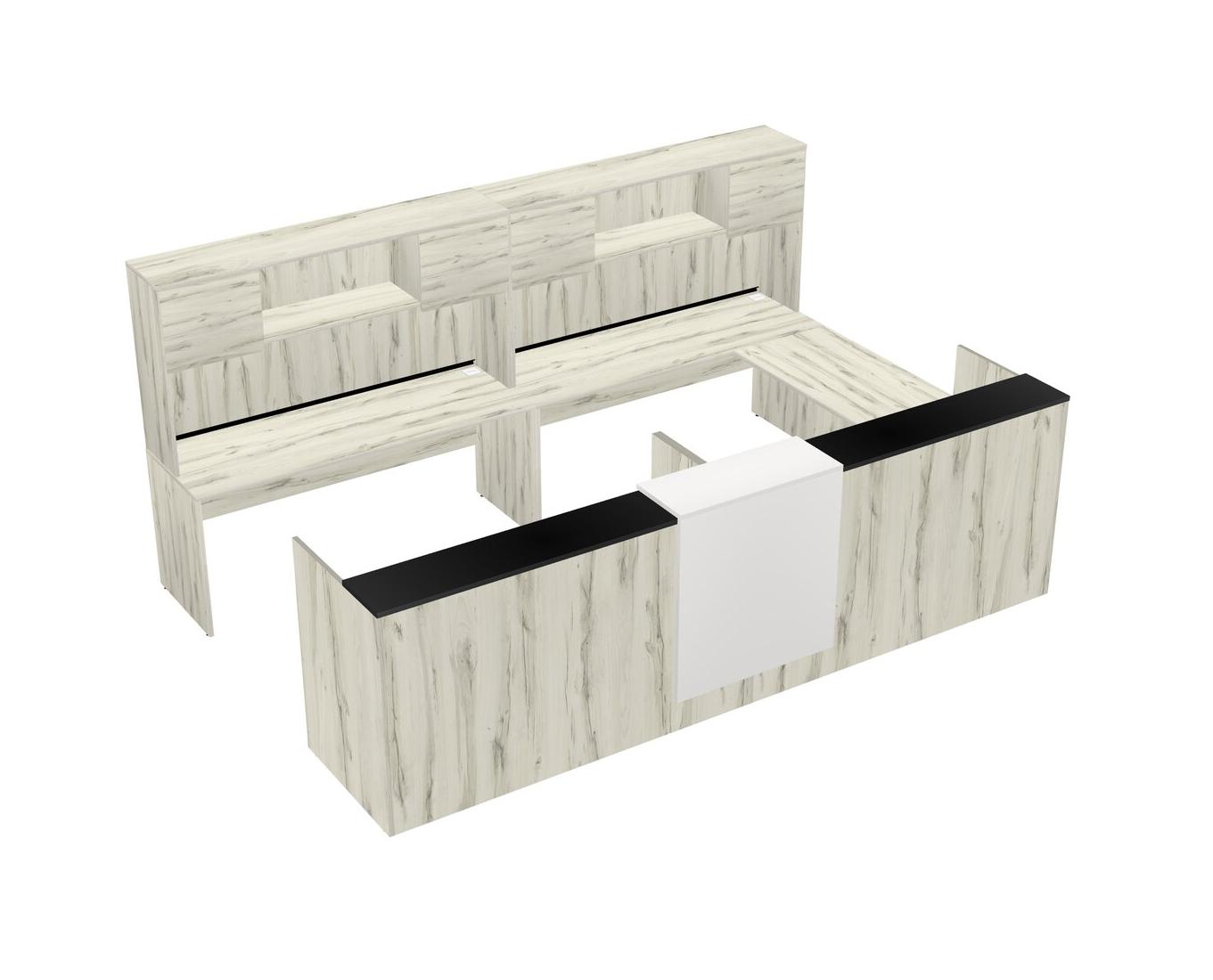 Modular Shared One Sided U-Shaped Reception Desk With Floating Counter + Hutch