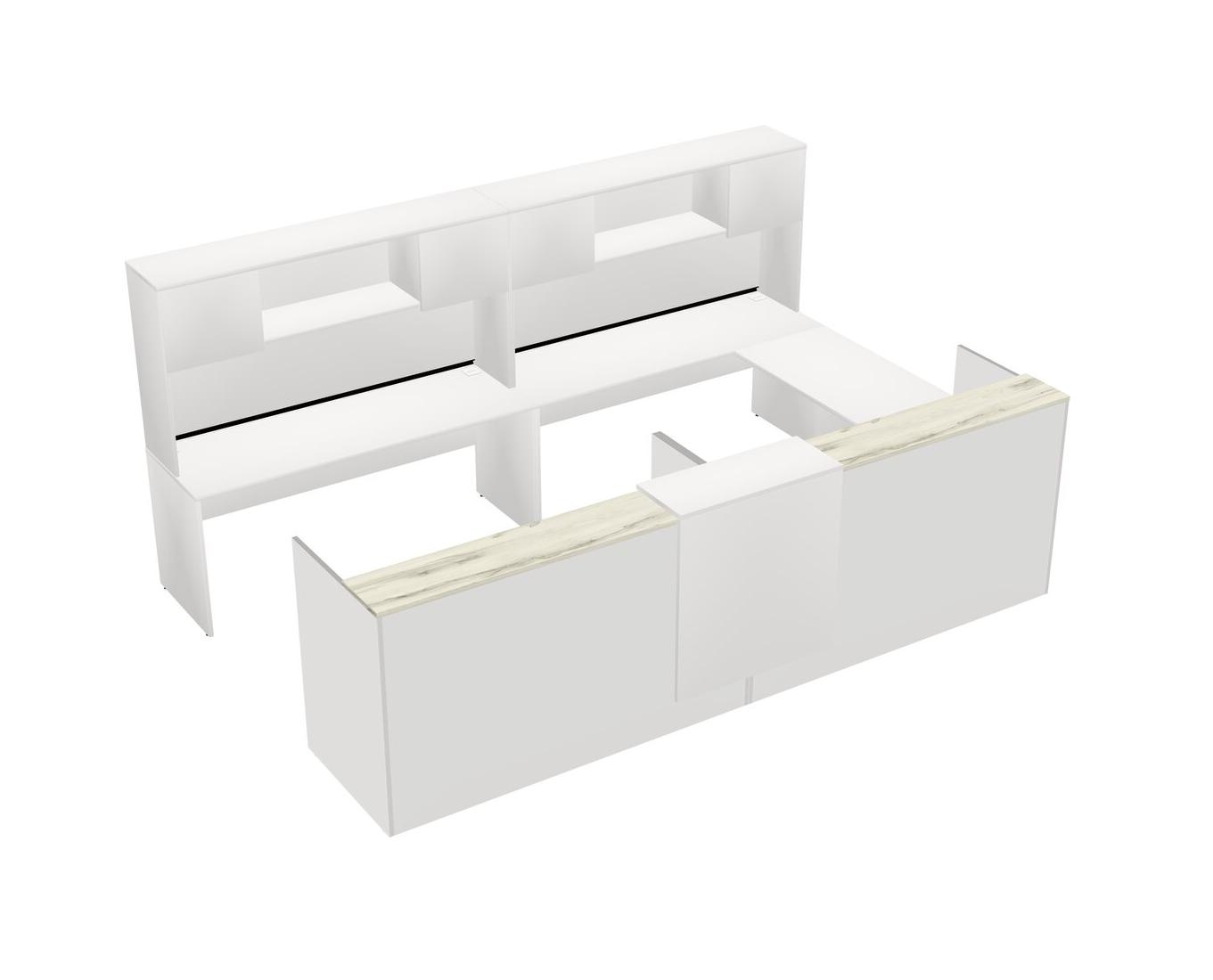 Modular Shared One Sided U-Shaped Reception Desk With Floating Counter + Hutch