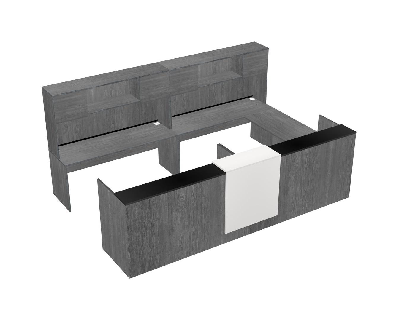 Modular Shared One Sided U-Shaped Reception Desk With Floating Counter + Hutch