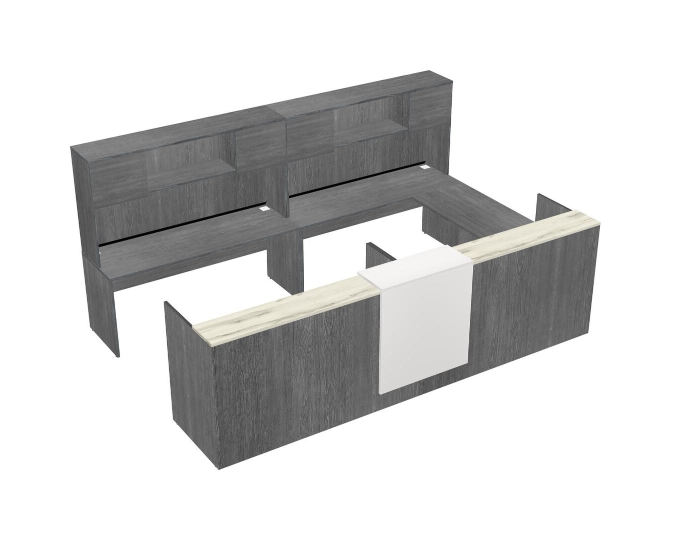 Modular Shared One Sided U-Shaped Reception Desk With Floating Counter + Hutch