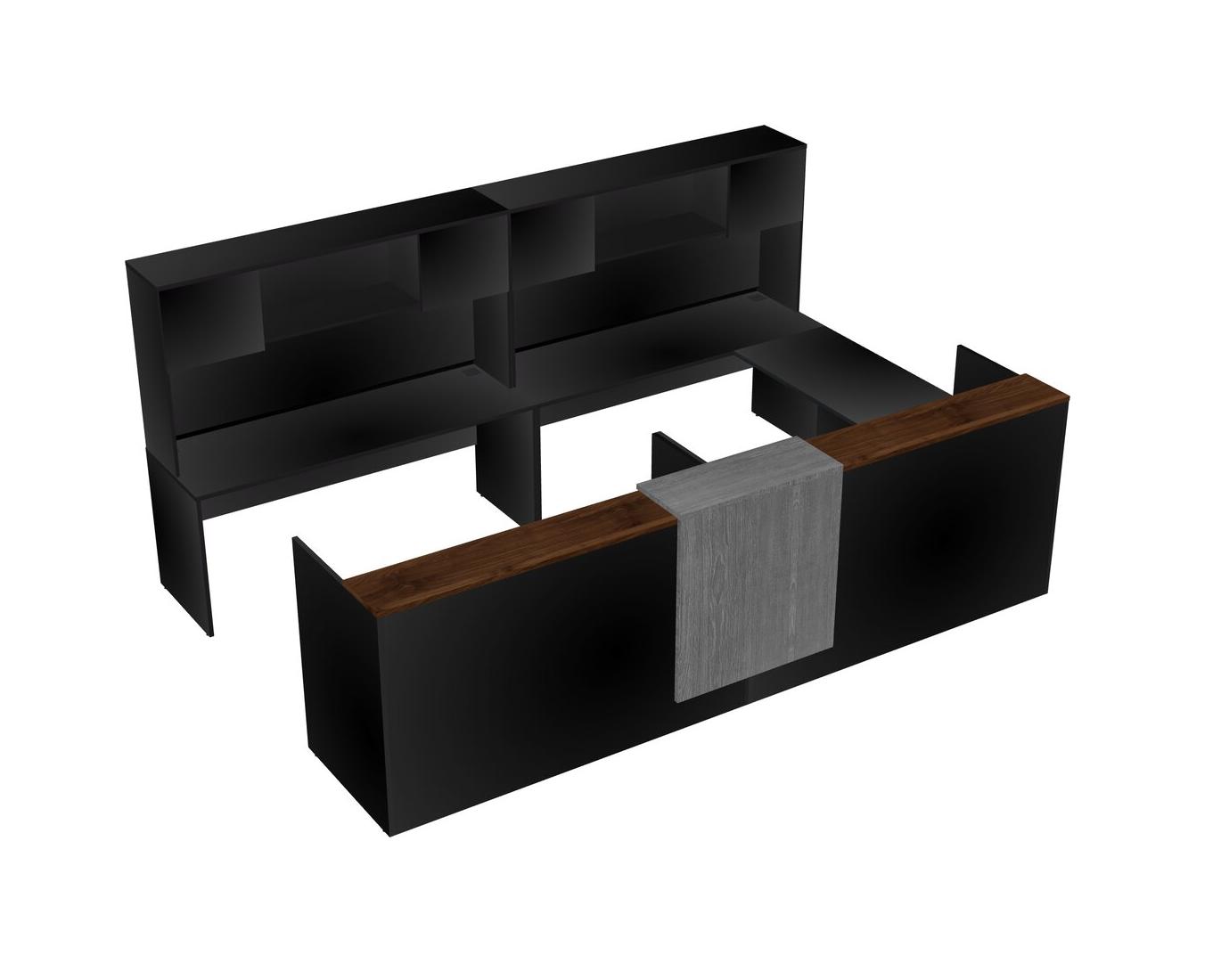 Modular Shared One Sided U-Shaped Reception Desk With Floating Counter + Hutch