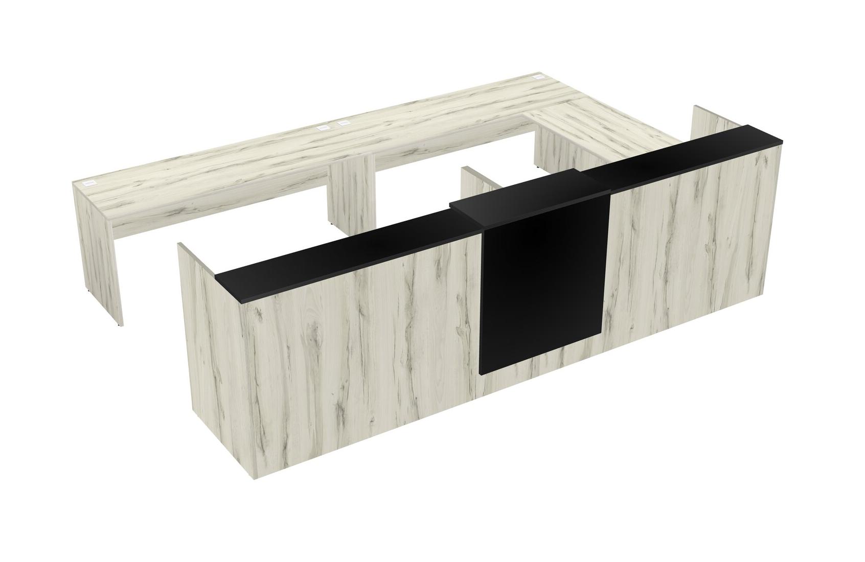 Modular Shared One Sided U-Shaped Reception Desk With Floating Counter + Wooden Mobile Drawers