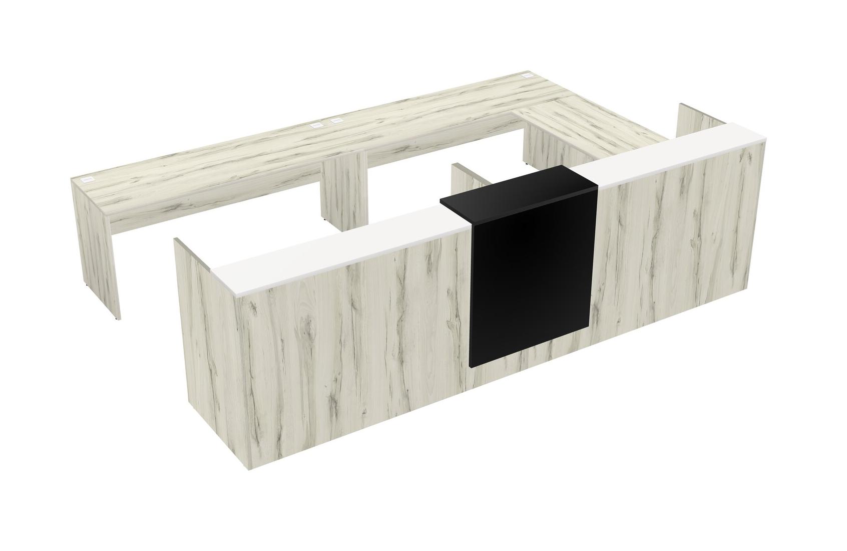 Modular Shared One Sided U-Shaped Reception Desk With Floating Counter + Wooden Mobile Drawers