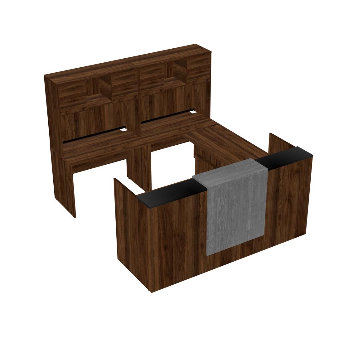 Modular Shared One Sided U-Shaped Reception Desk With Floating Counter + Hutch