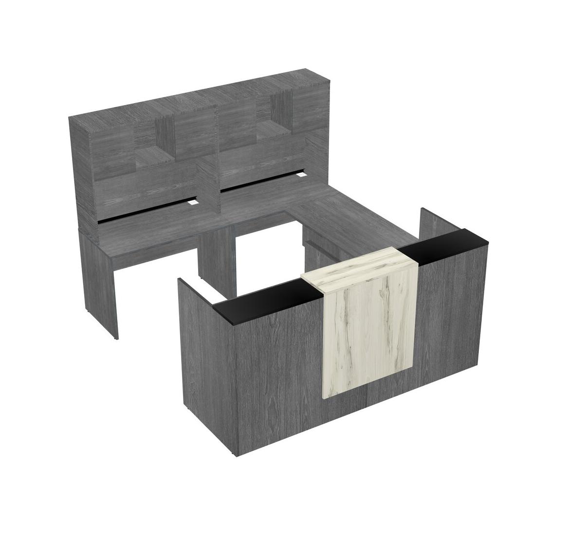 Modular Shared One Sided U-Shaped Reception Desk With Floating Counter + Hutch